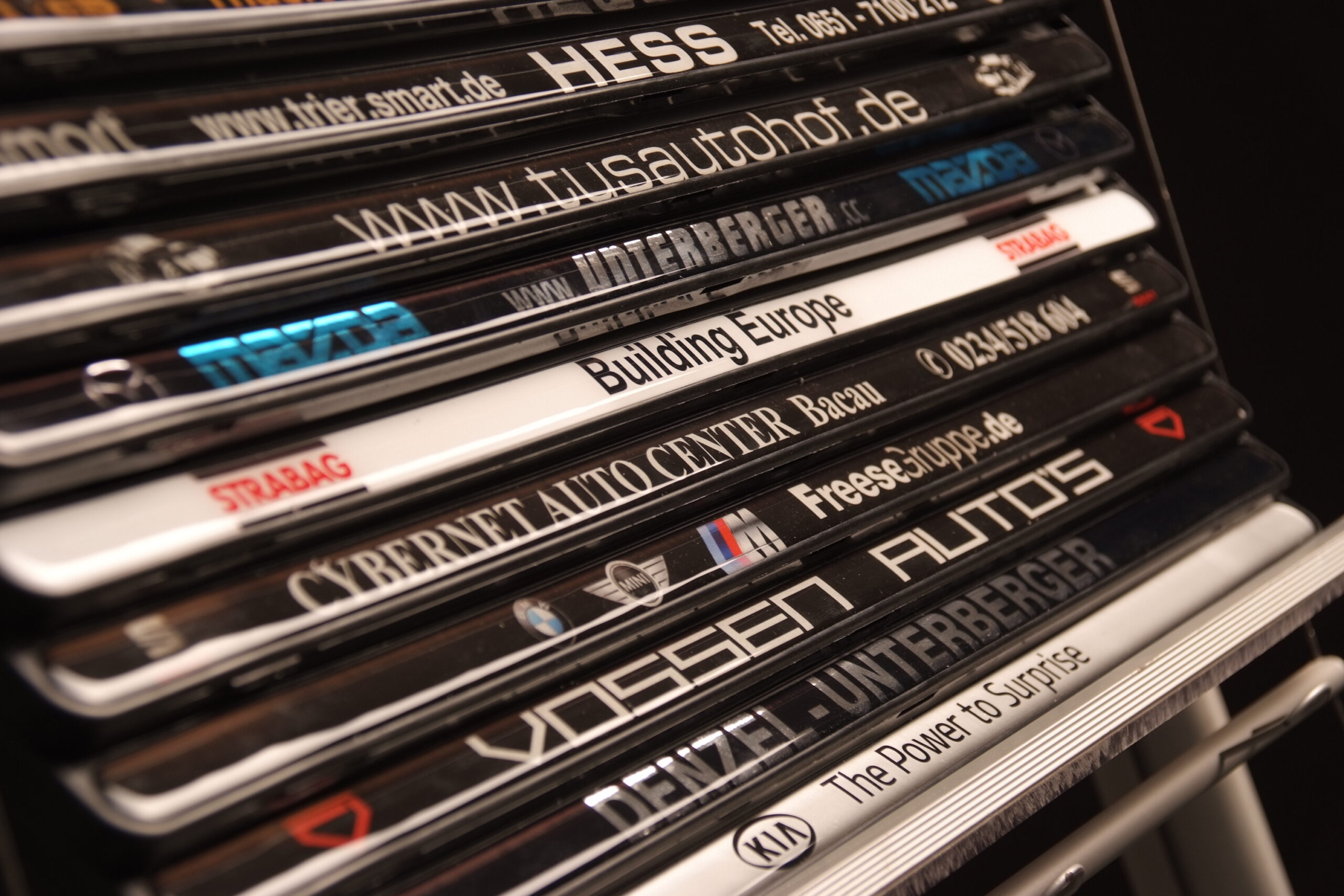 Are you unsure which print design best suits your licence plate holder? We will be happy to help you make the right choice - whether doming, silk-matt realisation or classic screen printing. We will advise you on the requirements for your print data and help you choose a solution that perfectly matches your corporate design. Simply contact us - we will support you personally and competently.